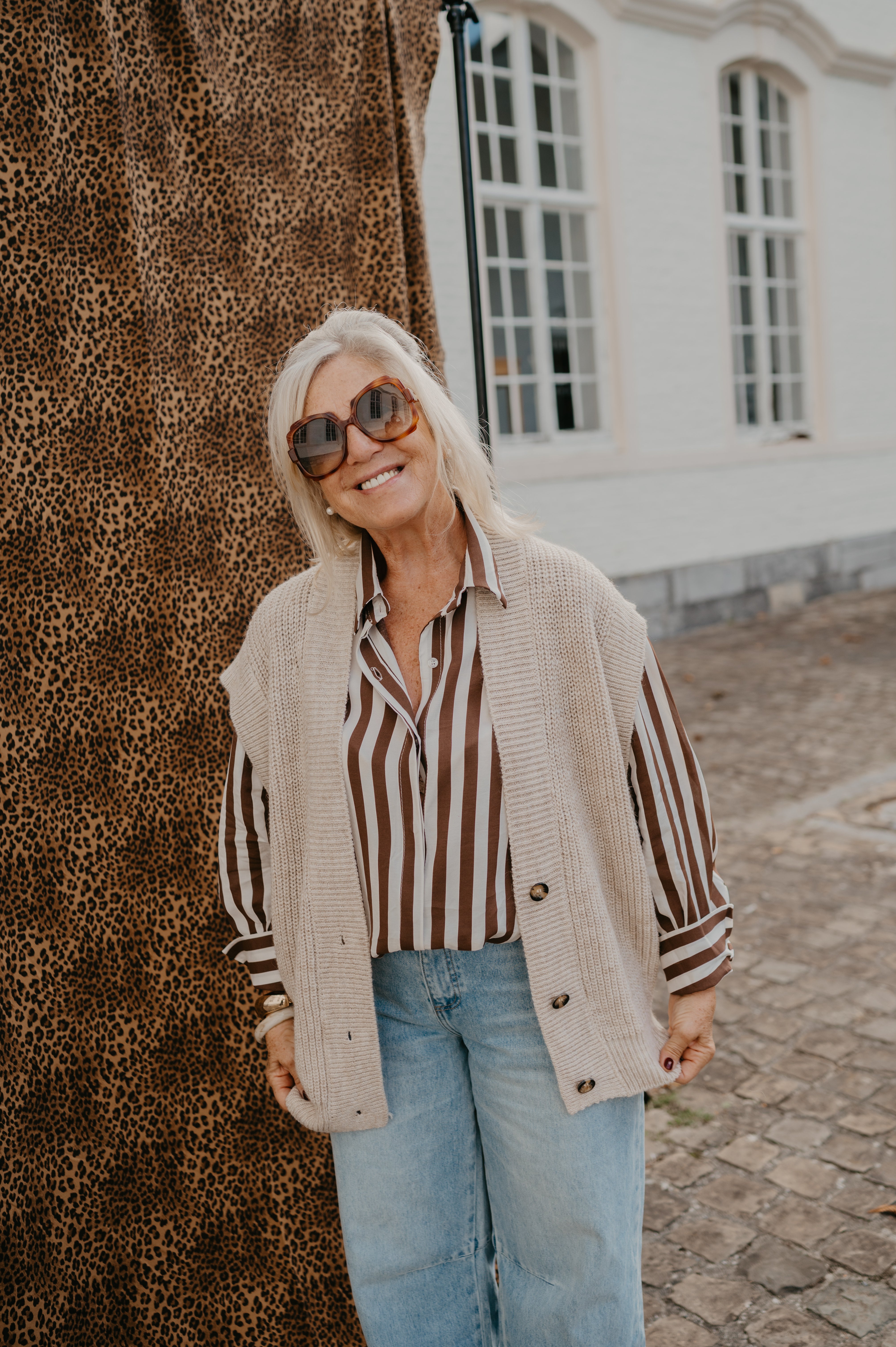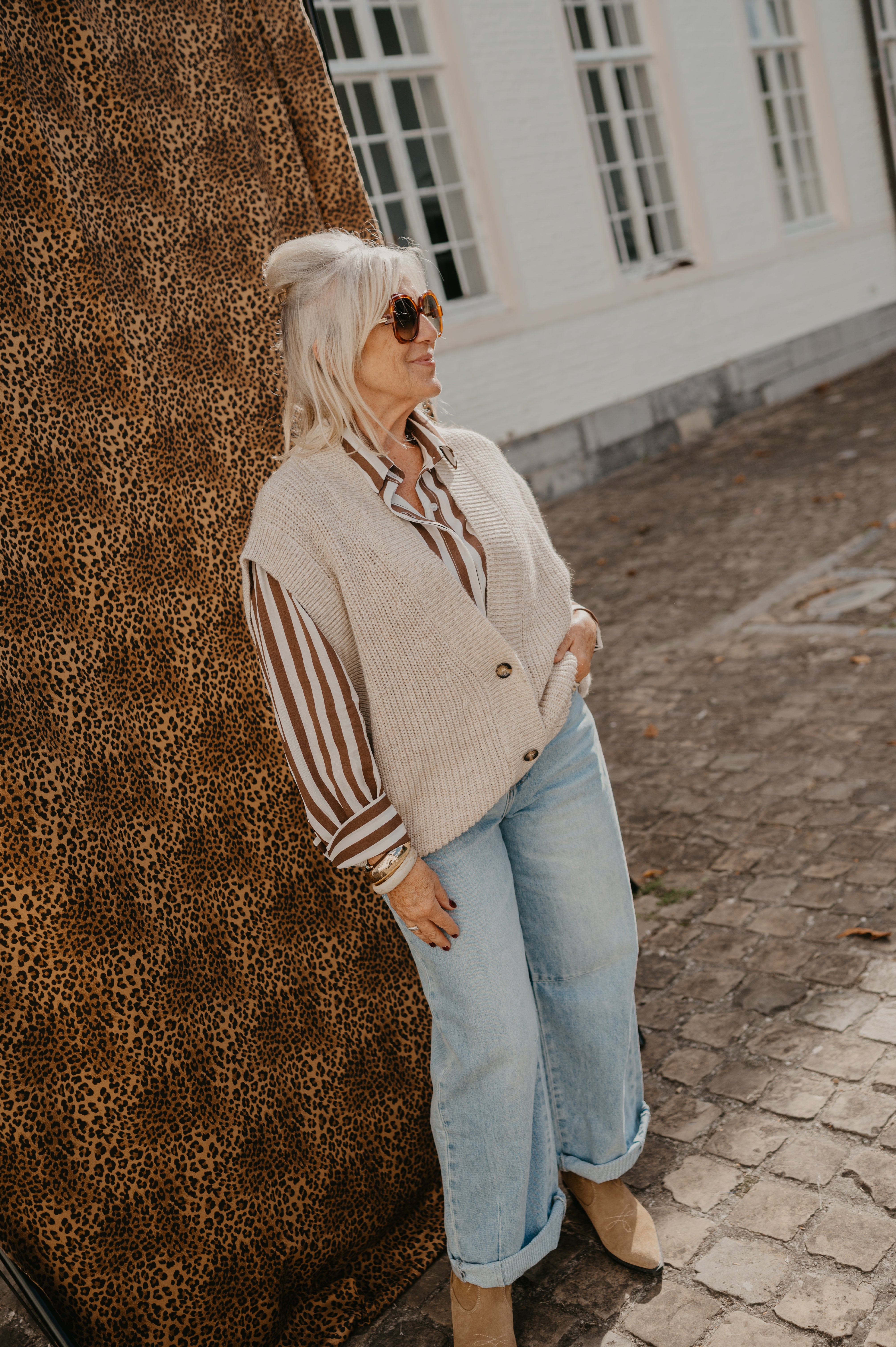 FITTING:Beschikbaar in ONE SIZE (34 - 42)V-halsZonder mouwenMet knopenLanger model