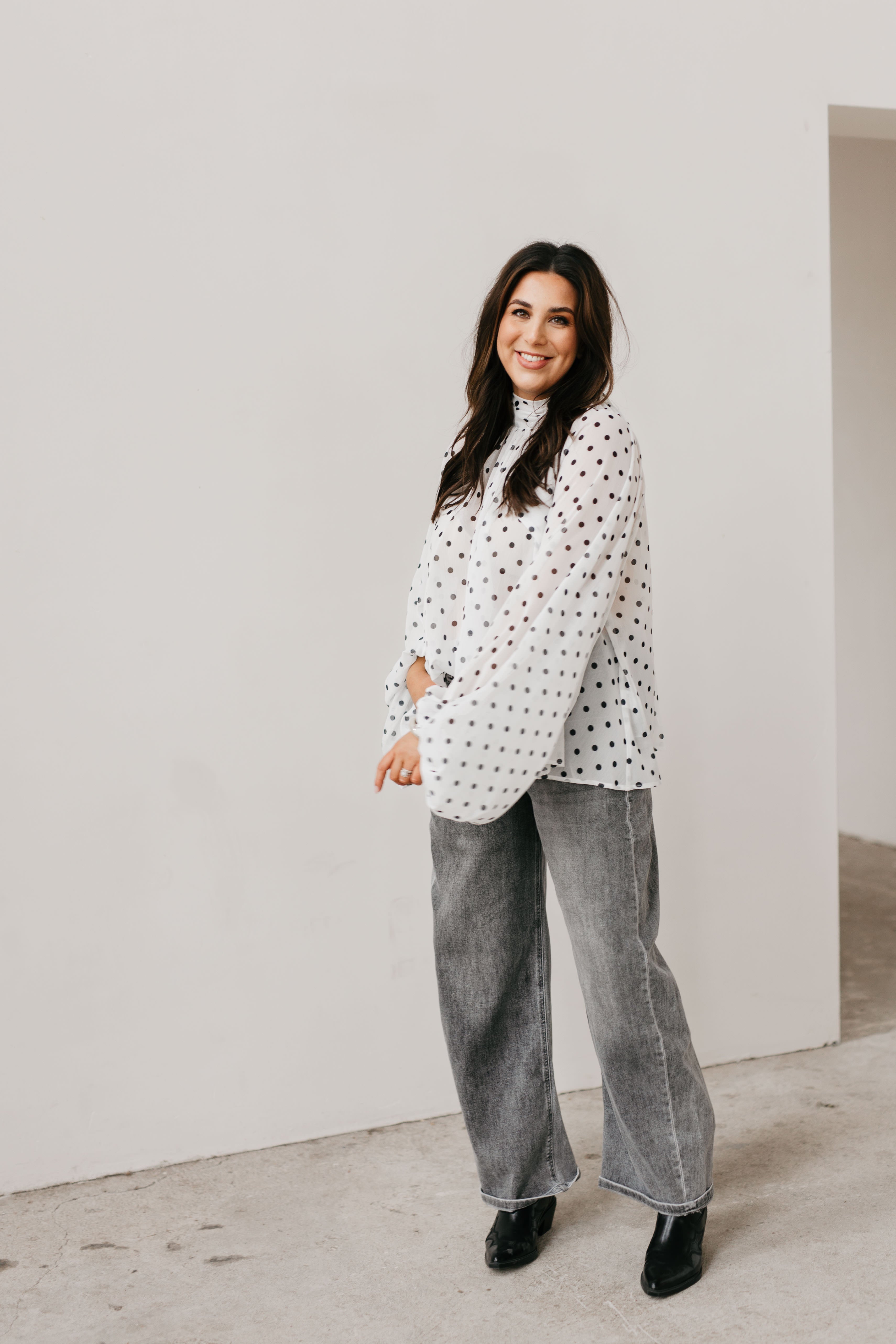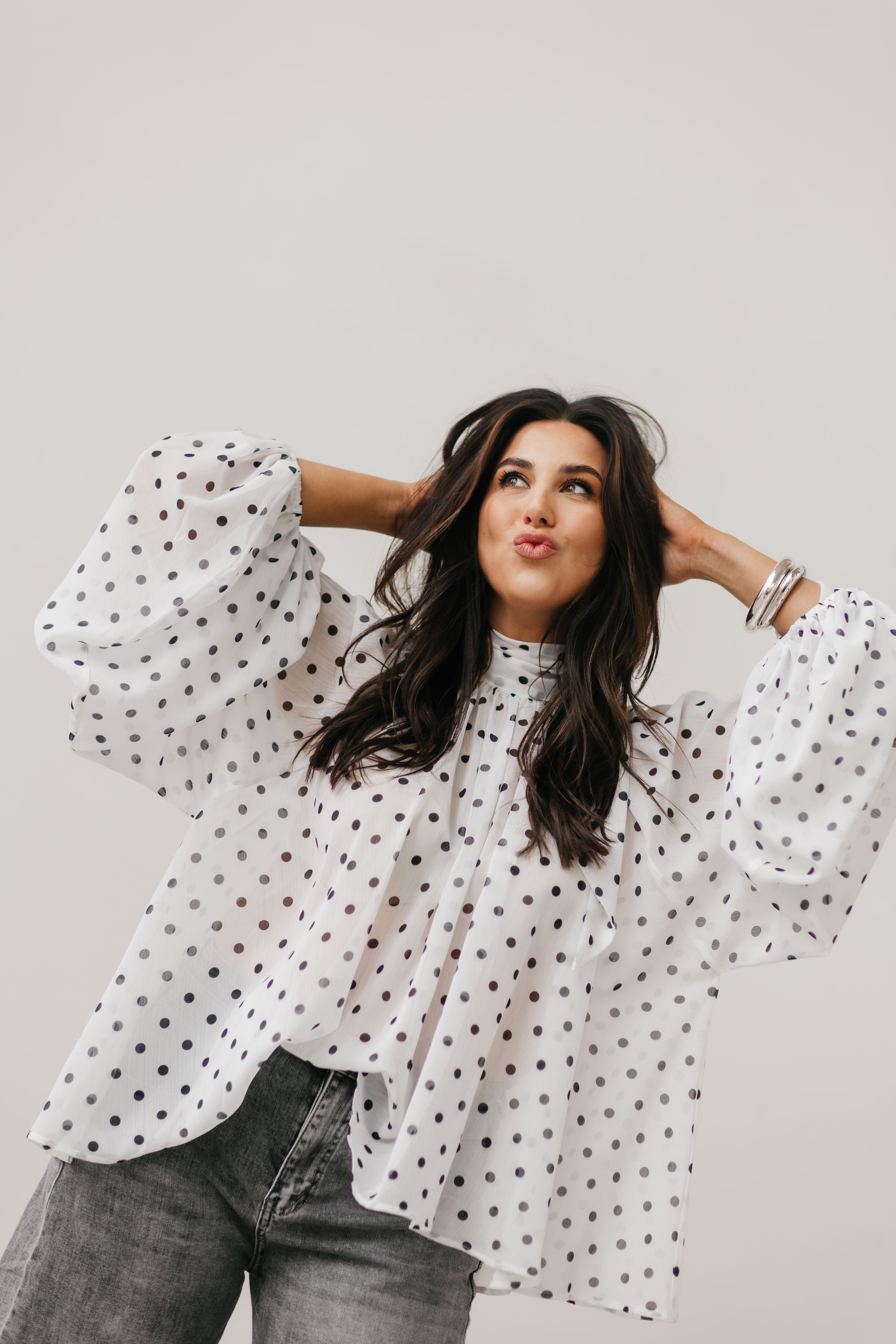 FITTING:Beschikbaar in ONE SIZE (36 - 42)Lange mouwenRonde halsWijd modelMet strik aan de achterkantBallonmouwen