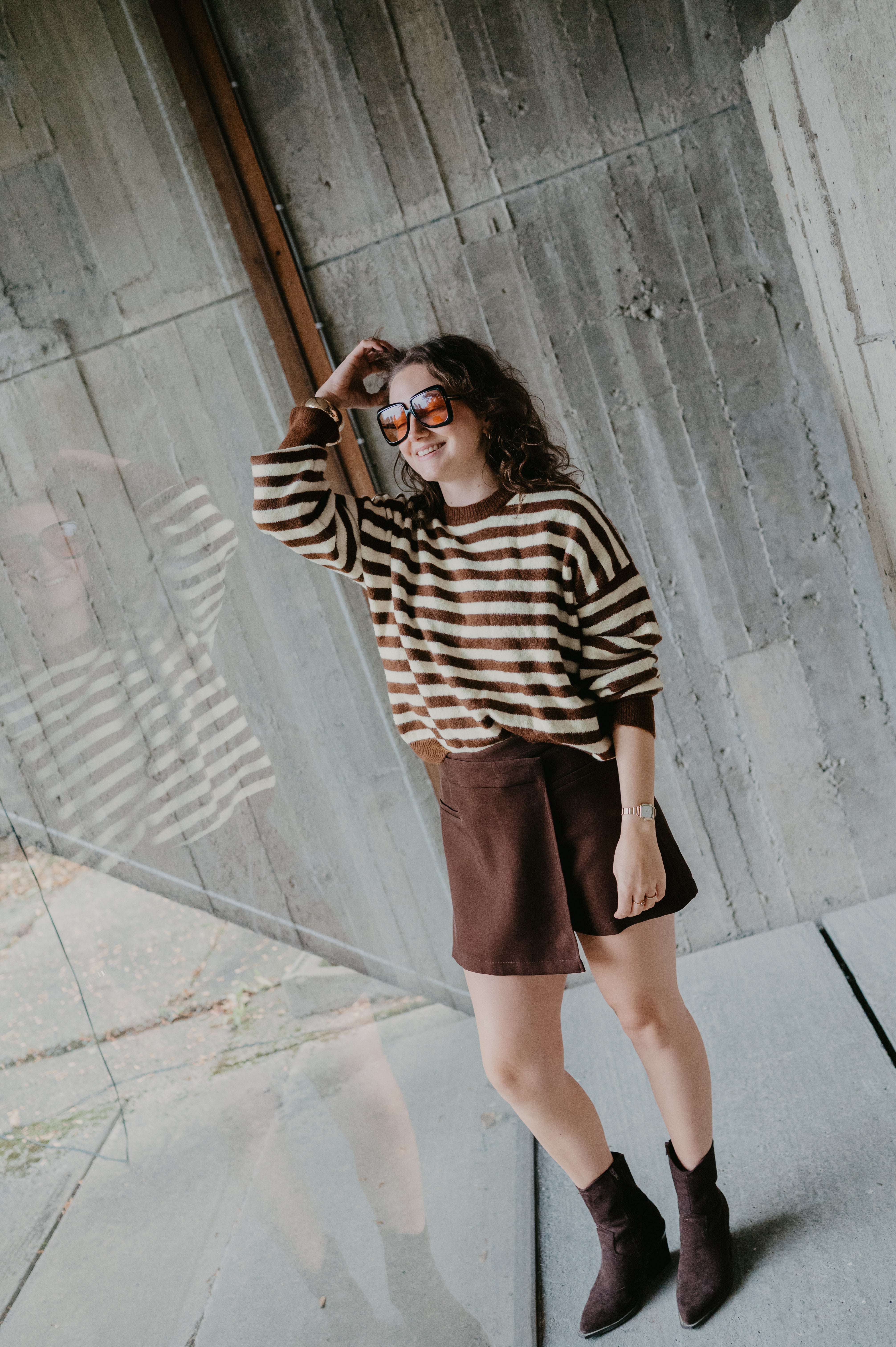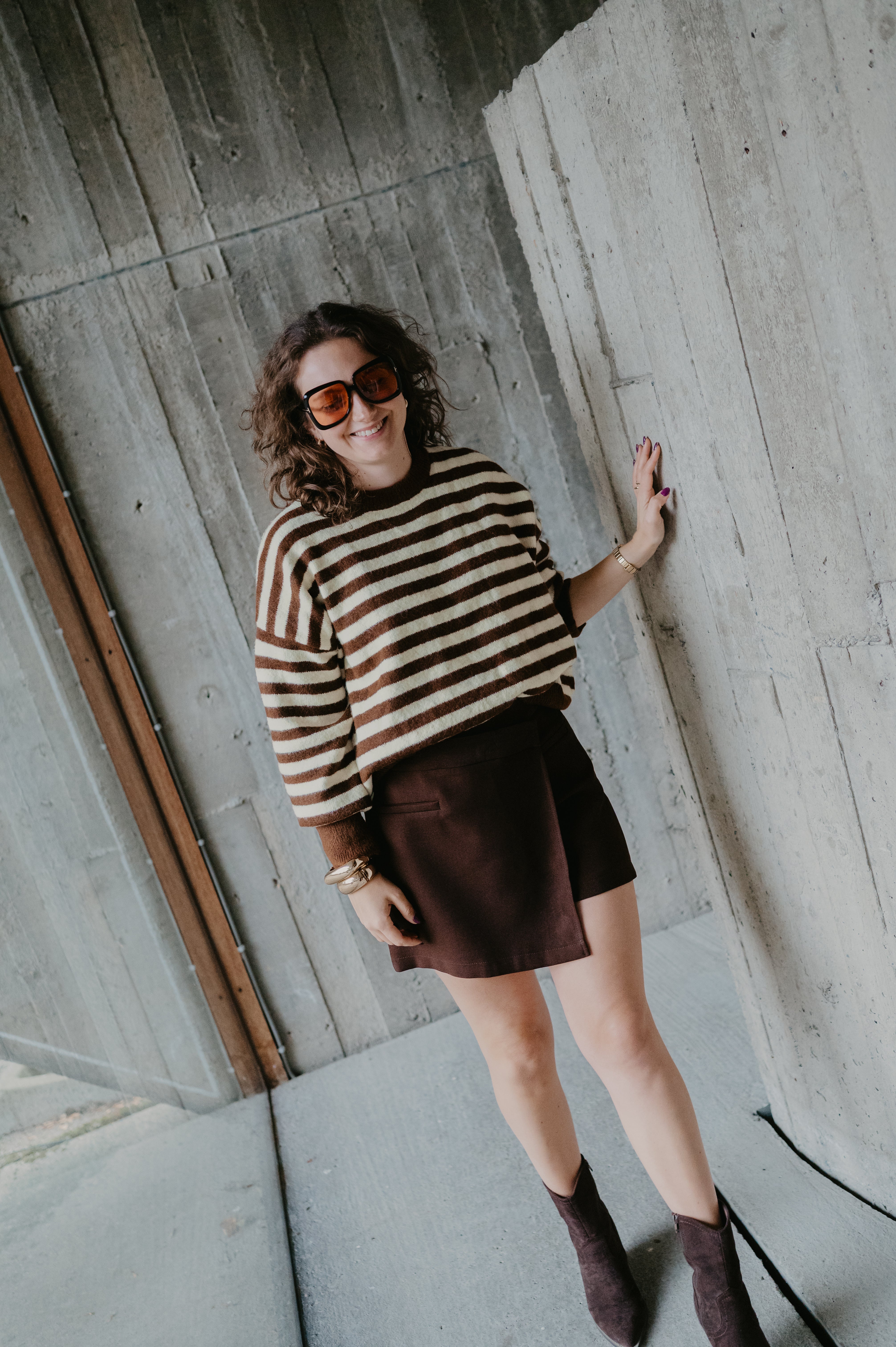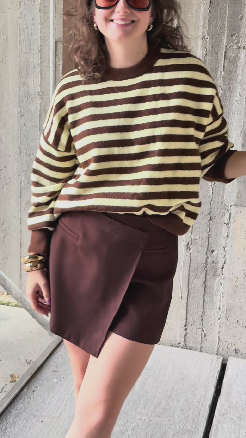 In deze skort draagt zij maatje large voor een oversized effect