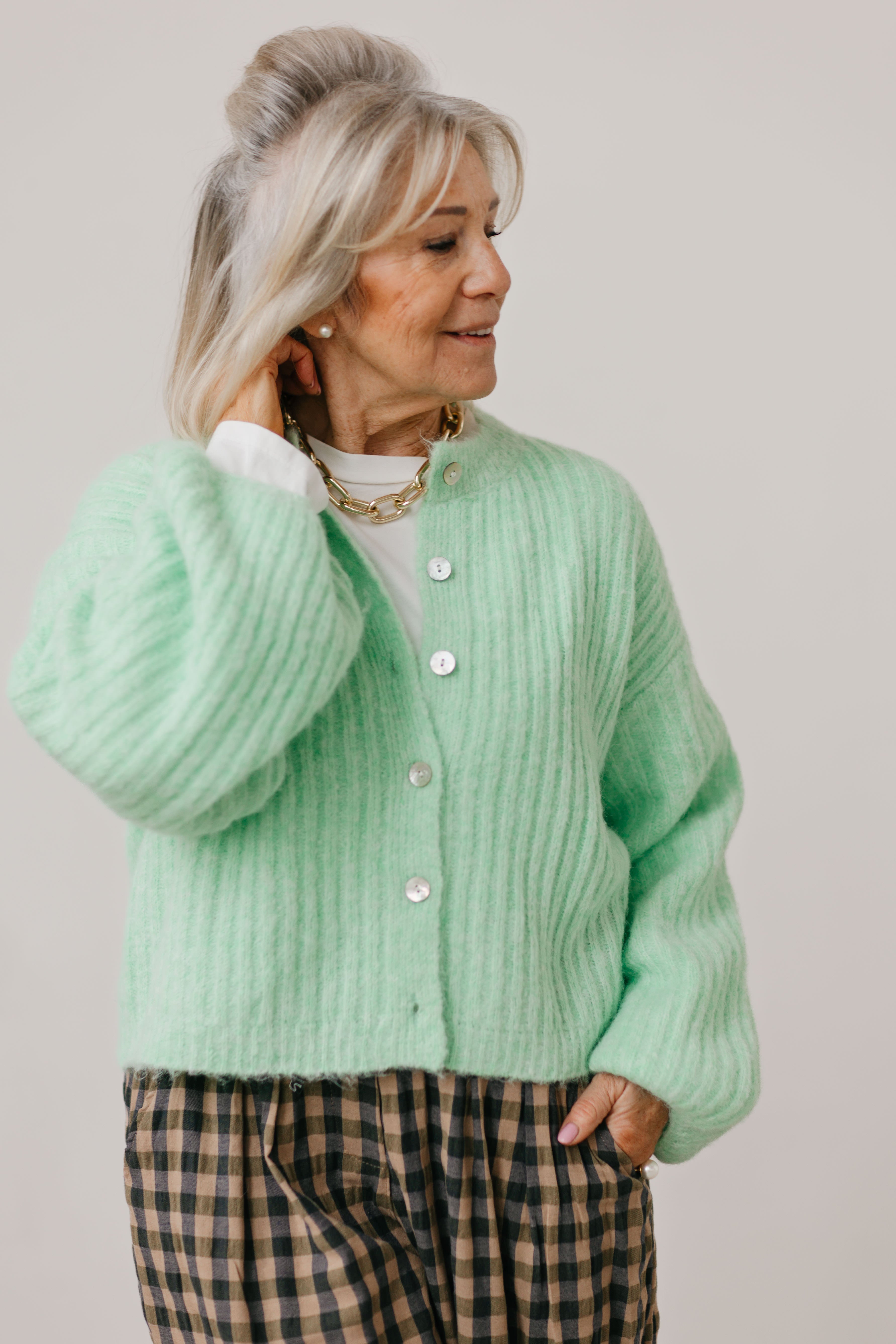 FITTING:Beschikbaar in ONE SIZE (36 - 42)Lange mouwen Ronde halsRecht model